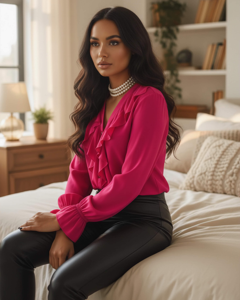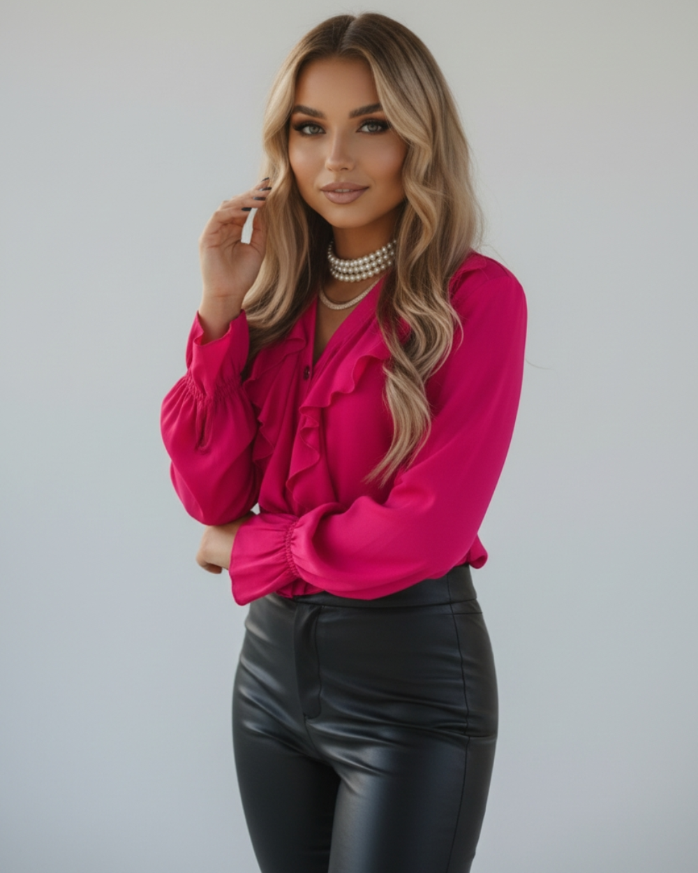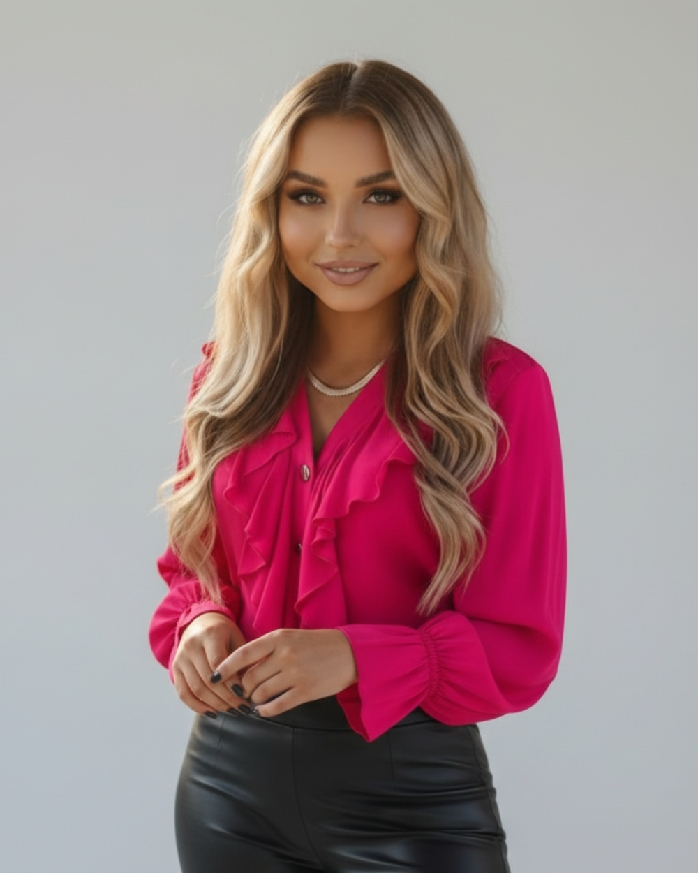 Ta koszula, w odcieniu intensywnej fuksji to idealny wybór dla kobiet, które pragną połączyć klasyczną elegancję z odważnym, nowoczesnym akcentem.