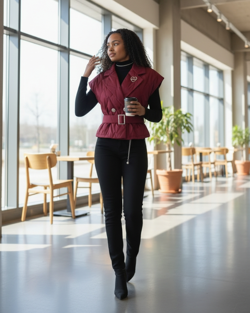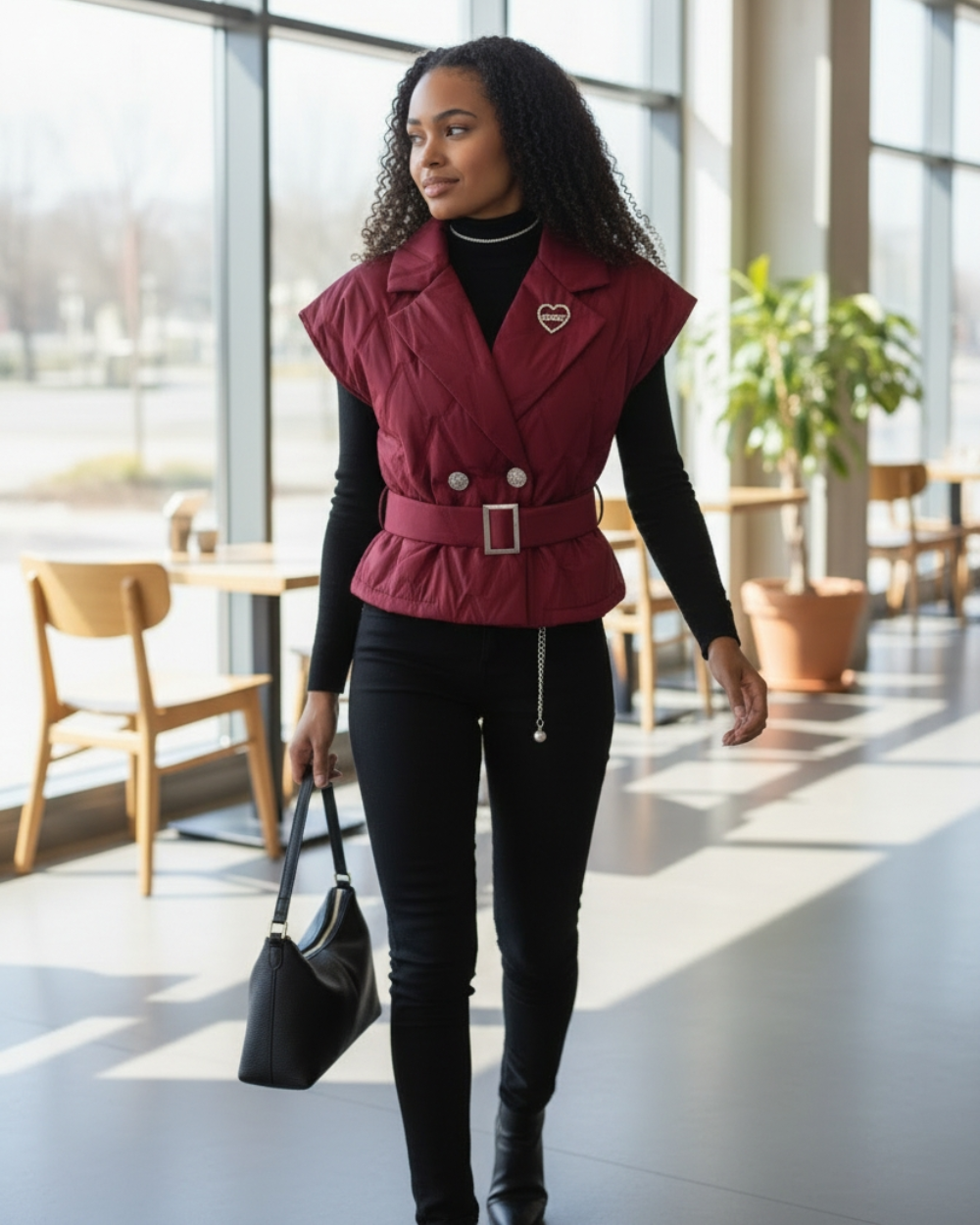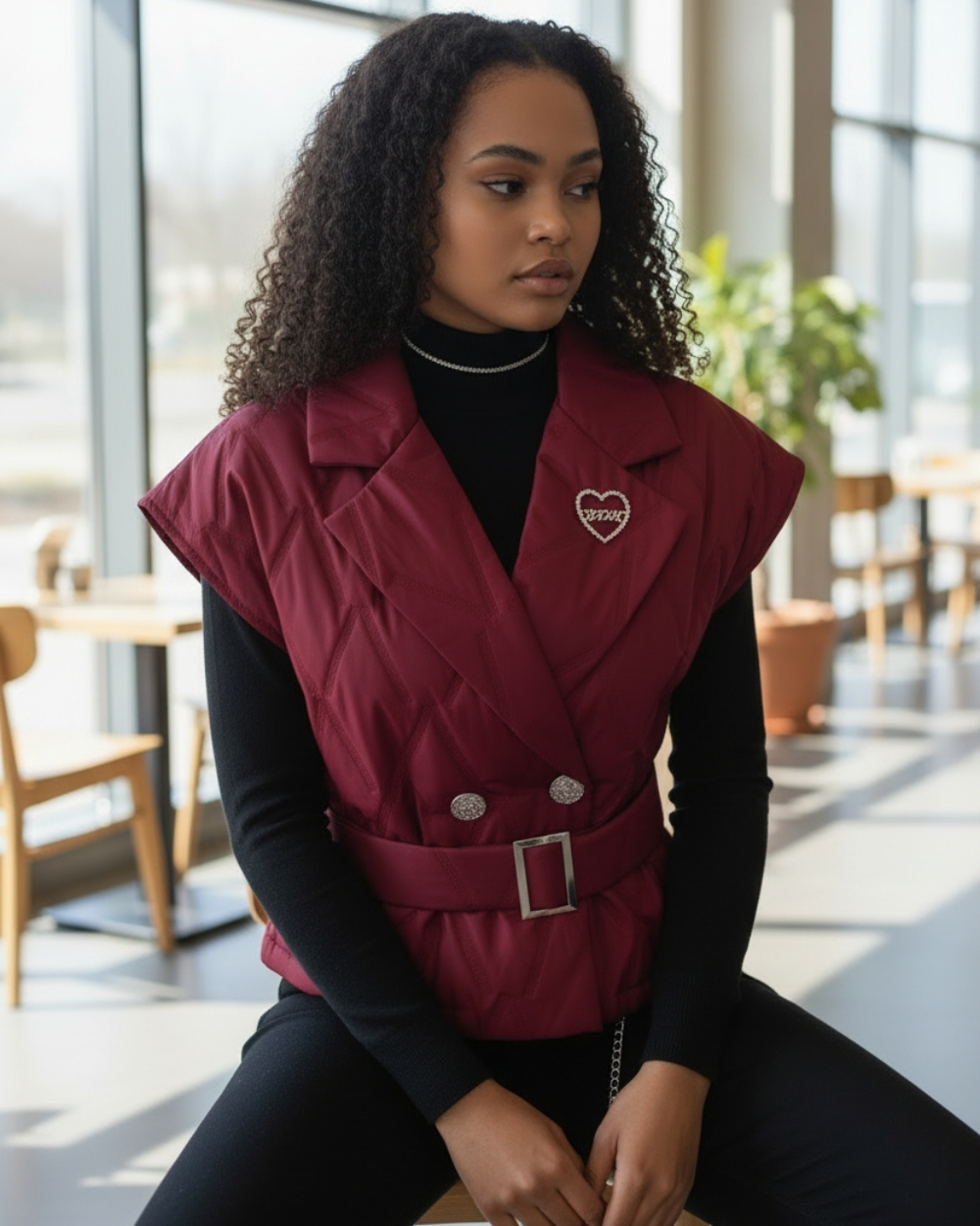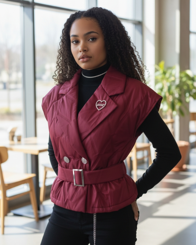 Pikowana kamizelka o fasonie marynarki, która odmieni każdą Twoją stylizację. Rozmiar uniwersalny plus dołączony pasek z klamrą sprawiają, że świetnie układa się na różnych sylwetkach.